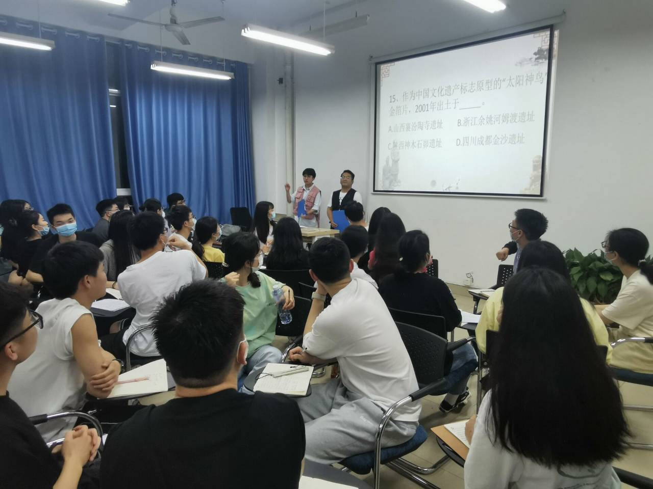 本期论坛首先集体观看文物嗨唱《达拉崩吧》和文物保护修复的视频,学习文物背后的历史,了解文物修复工作。接着,与会人员根据相关视频学习的内容进入知识竞答环节,现场气氛活跃,学员积极举手抢答。其后,按照积分排名顺序,各小组由小组长作为代表,依次在工作人员处选择领取拼图,进行文物“修复”游戏。学员们配合默契,动作迅速,成功拼出文物图形。