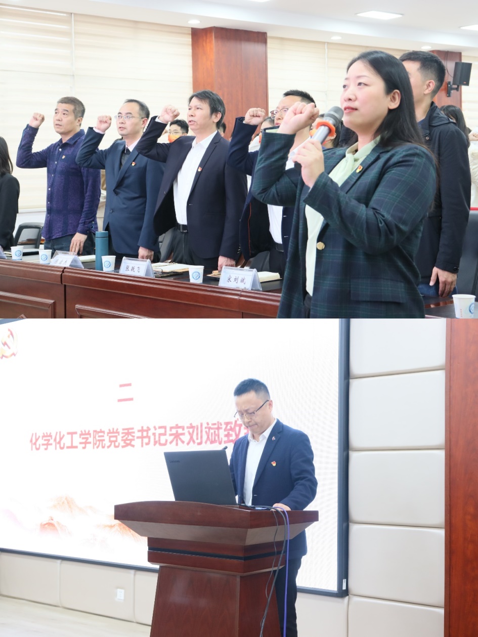 (陶双带领与会成员重温入党誓词、宋刘斌致辞在座学生)