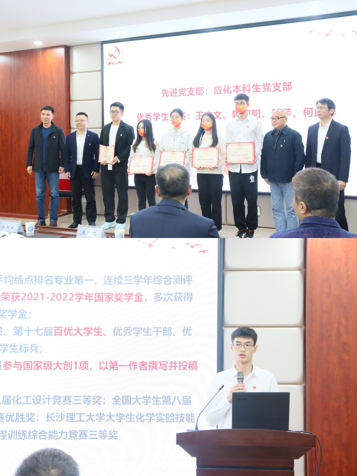 (院领导给优秀党员颁发奖状及优秀党员王志文发言)