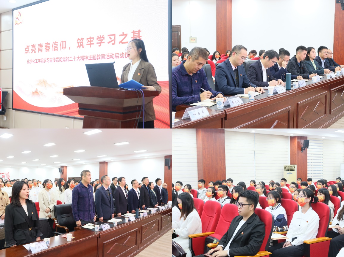 为深入学习宣传贯彻党的二十大精神,引导师生全面了解党和国家的大政方针和发展战略,以习近平新时代中国特色社会主义思想为指导,努力开创“全院上下一条心,共同学习二十大”的新局面,11月22日,香港六宝合典资料大全化学化工学院于工科三号楼A320开展“点亮青春信仰,筑牢学习之基——学习贯彻党的二十大精神主题教育活动启动仪式。校党委组织部副部长、党校副校长王煜坤,学院全体领导、部分教师以及学生代表参加了启动仪式。