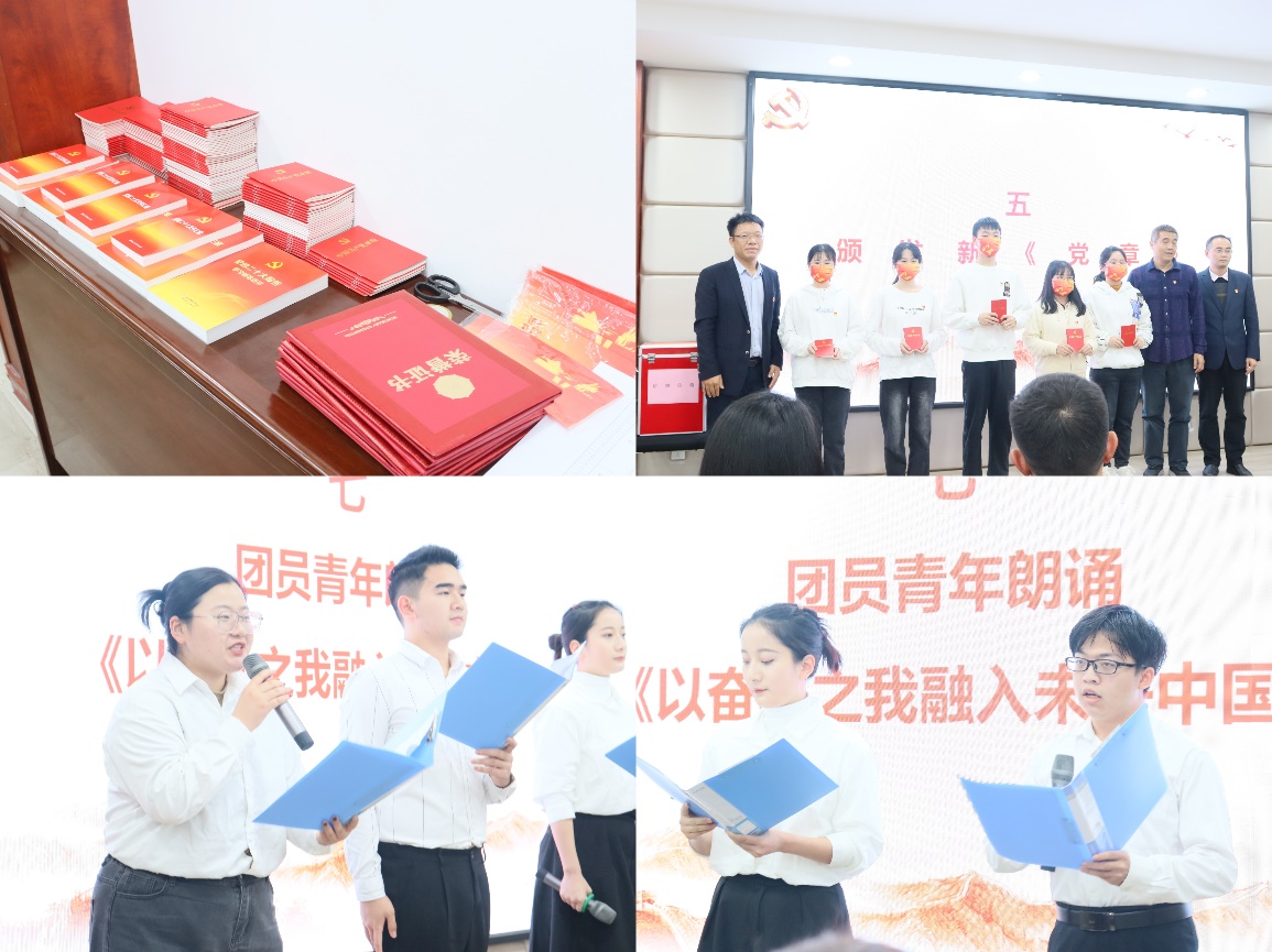 (院领导发放党章及学生朗诵)
