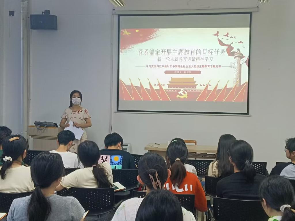 (图1 化工本科生党支部书记孙佳乐讲党课)