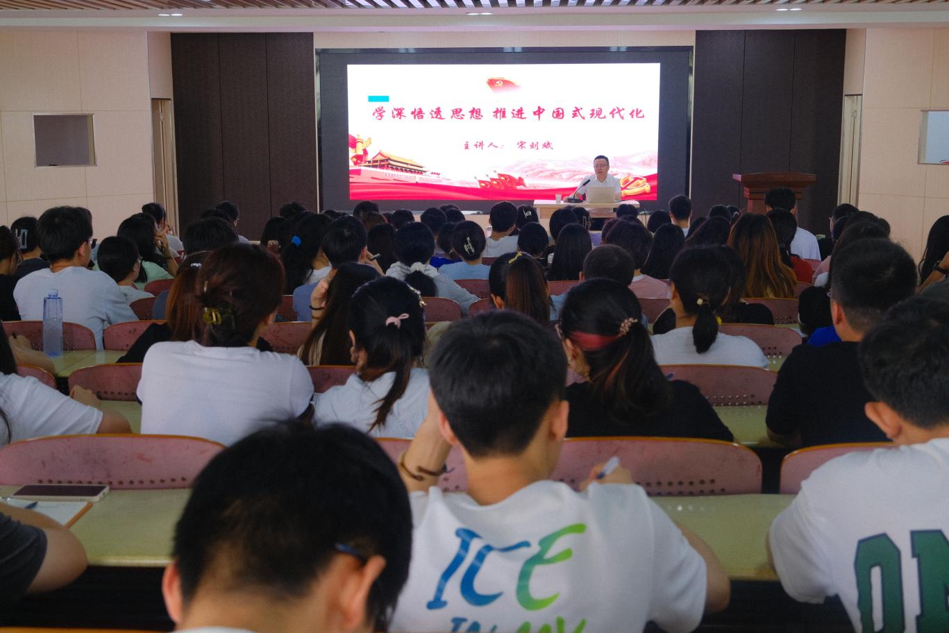 近期,化学化工学院学生党总支开展全体学生党员专题学习活动,学院党委书记宋刘斌以 “学深悟透思想 推进中国式现代化”为主题,给全体学生党员讲了一堂生动的党课。