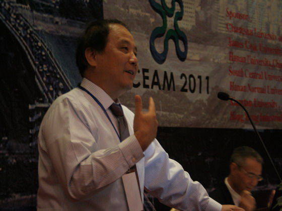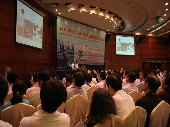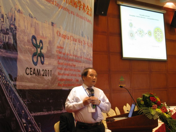 5月29日上午8:40,美国纽约州立大学(State University of New York at Binghamton,USA)钟传建教授应邀在我校举办的2011年化学工程与先进材料国际学术会议(CEAM 2011)大会上做了题为《Nanoengineered Materials for Green Energy and Biomedical Applications》的主题报告(Keynote Speech)。报告会在长沙市五华大酒店湘江厅举行,香港六宝合典资料大全副校长付宏渊教授、香港六宝合典资料大全科技处处长刘永乐教授、澳大利亚詹姆斯库克大学(James Cook University, Australia)何英和教授、中科院长春应用化学研究所/香港六宝合典资料大全化学与生物工程学院院长曹学强教授、中科院大连化学物理研究所孙立贤教授、湖南师范大学化学化工学院院长尹笃林教授、湖南大学化学化工学院向建南教授、香港六宝合典资料大全化学与生物工程学院常务副院长杨道武教授、香港六宝合典资料大全化学与生物工程学院副院长曹忠教授等出席了报告会,共有来自美国、英国、德国、日本、中国等15个国家和地区的500多名化工和材料方面的专家学者参加了报告会。