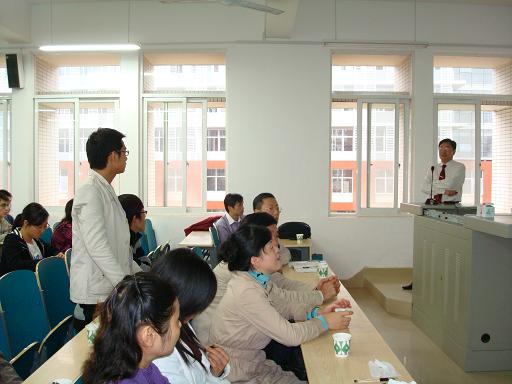 孙教授介绍了燃料电池与储氢材料的研究进展,着重介绍了燃料电池原理、储氢材料筛选以及工业化所面临的成本问题——特别是贵金属催化剂及相关膜选择难题,分析了该专题国内外相关研究现状,大大开拓了师生视野,激发了大家的学习兴趣。期间,师生踊跃提问,孙教授耐心地回答了师生提问,风趣简洁的解答令人回味无穷。讲座持续了两个小时,孙教授还热情邀请大家报考中科院大连化物所研究生。会毕,师生还沉浸在讲座氛围中,讨论着相关的问题。