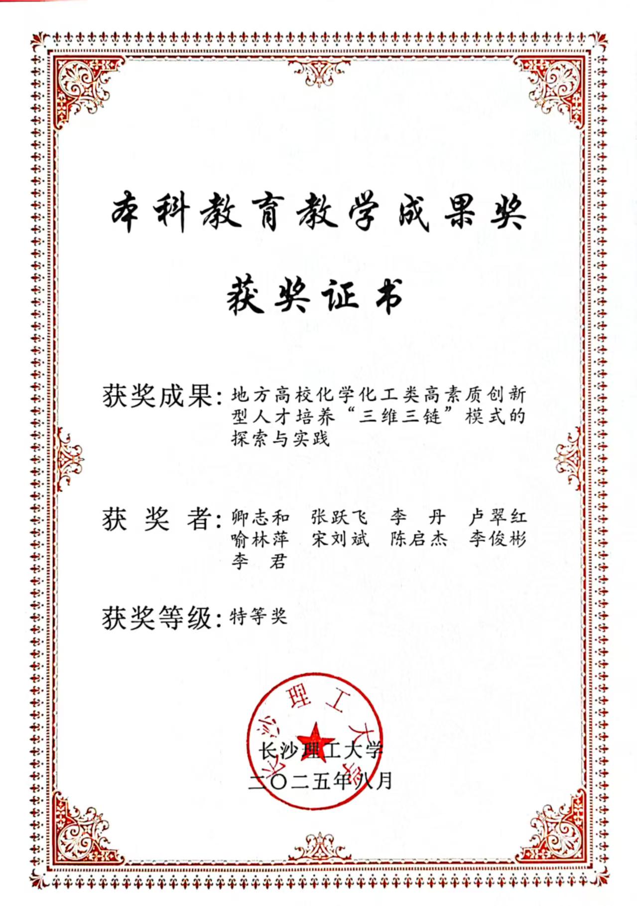 获奖等级:本科教育教学成果奖 特等奖