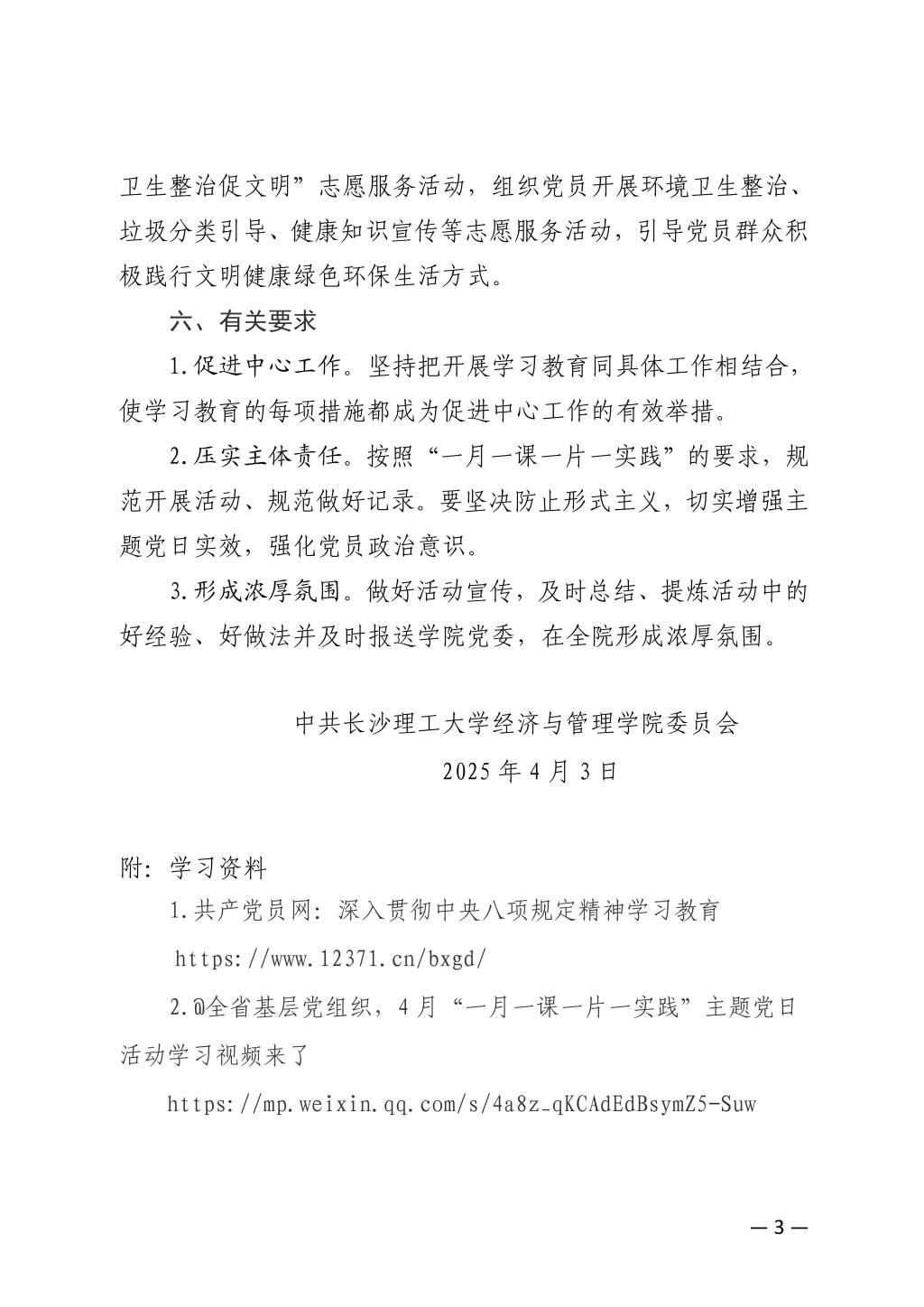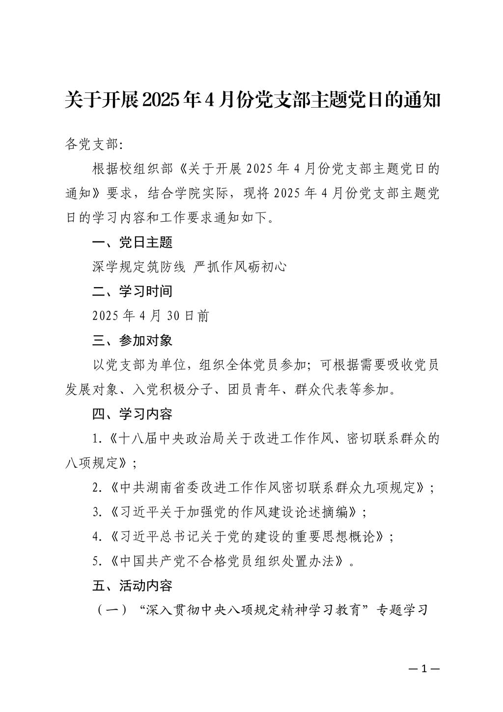 关于开展2025年4月份党支部主题党日的通知