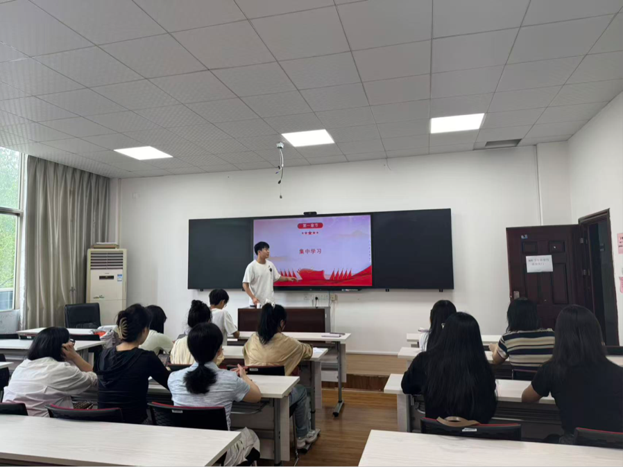 首先,朱湘林、何嘉宸两位支部书记领学《习近平总书记在纪念中国人民抗日战争暨世界反法西斯战争胜利80周年大会上的讲话》。接着,又带领全体支部党员学习《学校党委书记付宏渊在2025年教师节庆祝表彰大会暨党政工作例会(扩大)上的讲话》。