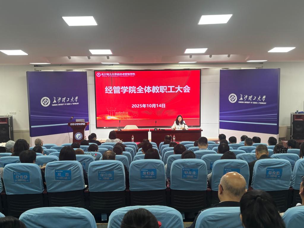 1014日下午,经管学院在金盆岭校区12200报告厅召开2025年秋季学期教职工大会,全面总结前一阶段工作情况,安排部署本学期各项重点工作。会议由院党委书记马丽主持。