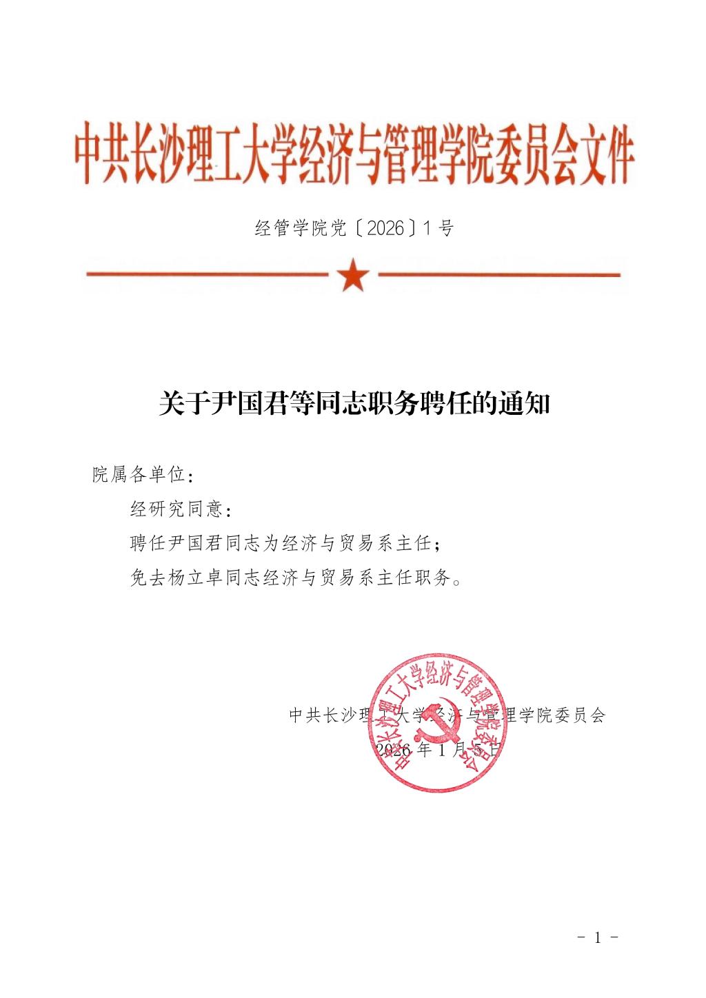 关于尹国君等同志职务任免的通知