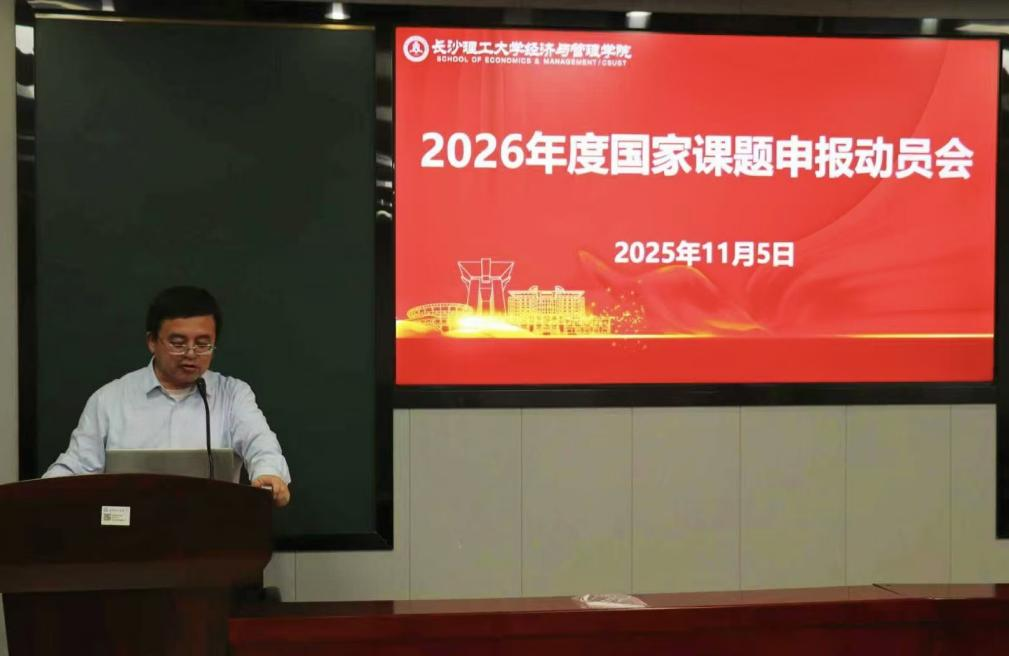 2025年11月5日,经济与管理学院在金盆岭校区7教212室召开2026年国家基金申报动员会。会议由副院长王治主持,院长彭新宇、各系主任及分管科研的副主任、2025年国家基金立项教师代表以及2026年国家基金项目申报教师60余人参加会议。