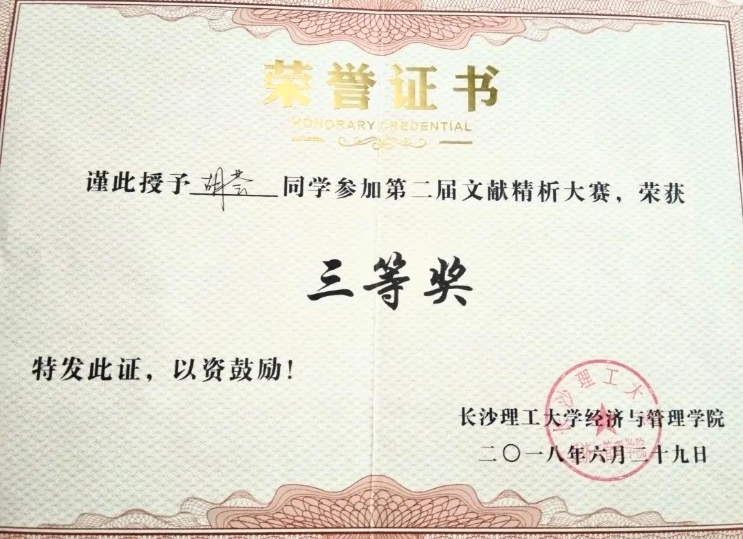 胡荟学姐不仅只是“学霸”、“科研达人”,课余时间的小生活也被她过得多姿多彩。校开展和院开展的各项文体活动也不在话下,其中在经管院所举办的第二届文献精析大赛中,荣获三等奖;