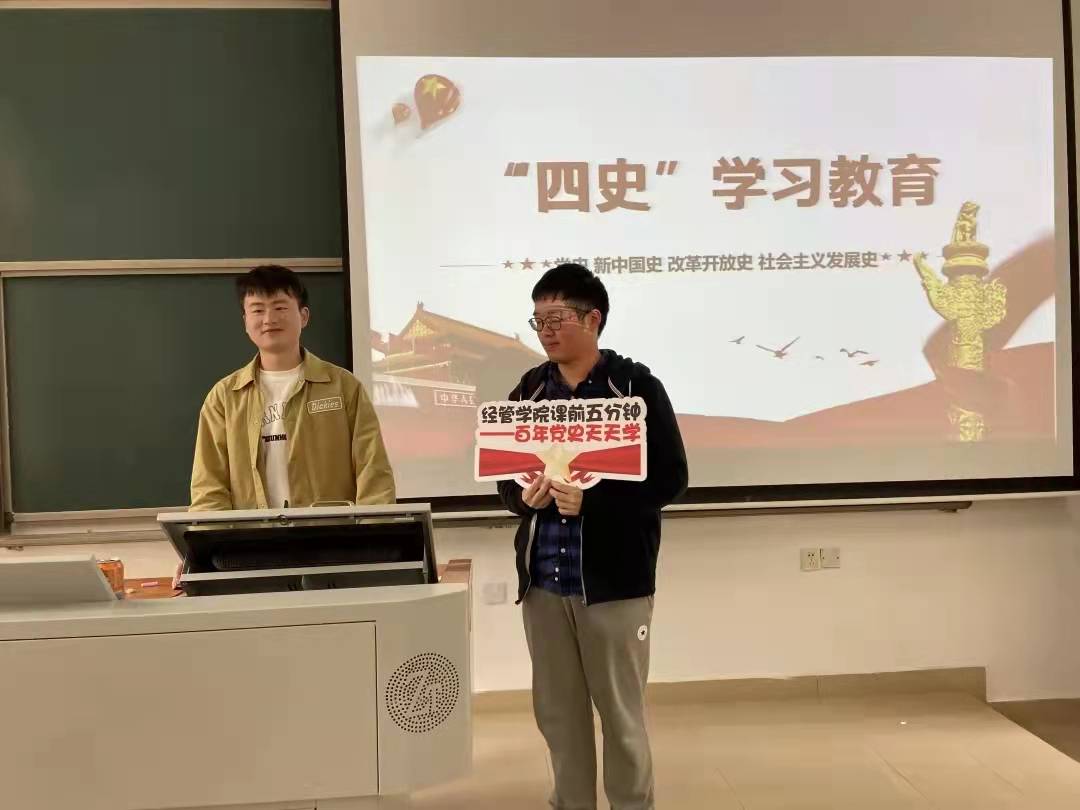 2021年,恰逢中国共产党成立一百周年,支委会安排支部成员轮流在课前五分钟讲述党史小故事,以此让大家对党的历史更加清晰、熟络。