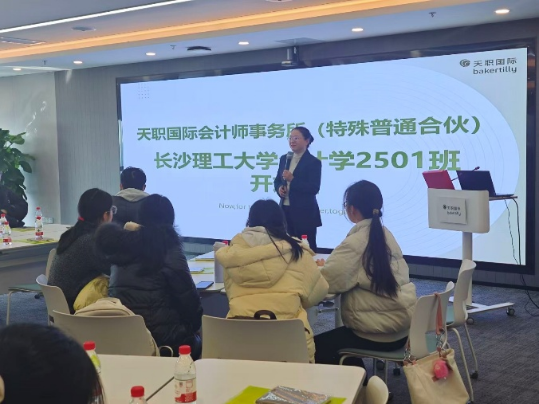 2026年1月7日下午,经济与管理学院会计学2501班的同学们在班主任唐青老师的带领下走进天职国际会计师事务所湖南分所,开展了一场以“青春聚力,知行并进”为主题的沉浸式企业开放日活动。