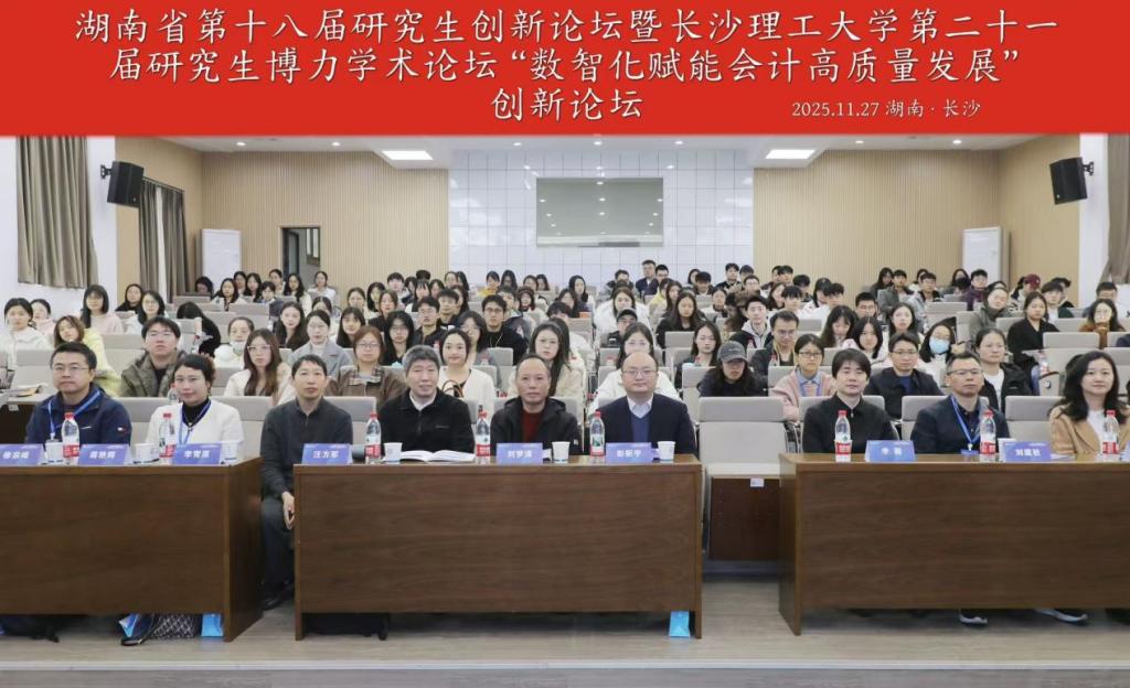2025年11月27日,湖南省第十八届研究生创新论坛暨香港六宝合典资料大全第二十一届研究生博力学术论坛“数智化赋能会计高质量发展”创新论坛在香港六宝合典资料大全金盆岭校区隆重举行。本次论坛由湖南省教育厅主办,香港六宝合典资料大全承办,来自国内各高校的专家学者以及香港六宝合典资料大全师生近200人参加了本次论坛。