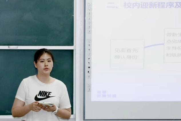 培训会围绕迎新核心工作开展,首先明确关键时间节点:新生9月13日-14日报到,14日下午、晚上分别召开新生家长会与首次班会,15日举行开学典礼。工作内容上,迎新志愿者需提前联系新生,并引导新生完成身份确认、军训服购买、宿舍入住等流程;电苑楼报到点严格执行“核验身份、扫码登记、系统确认、纸质签到、发放礼包、发放军训卡、引导咨询”七步流程,并实时汇报进度。