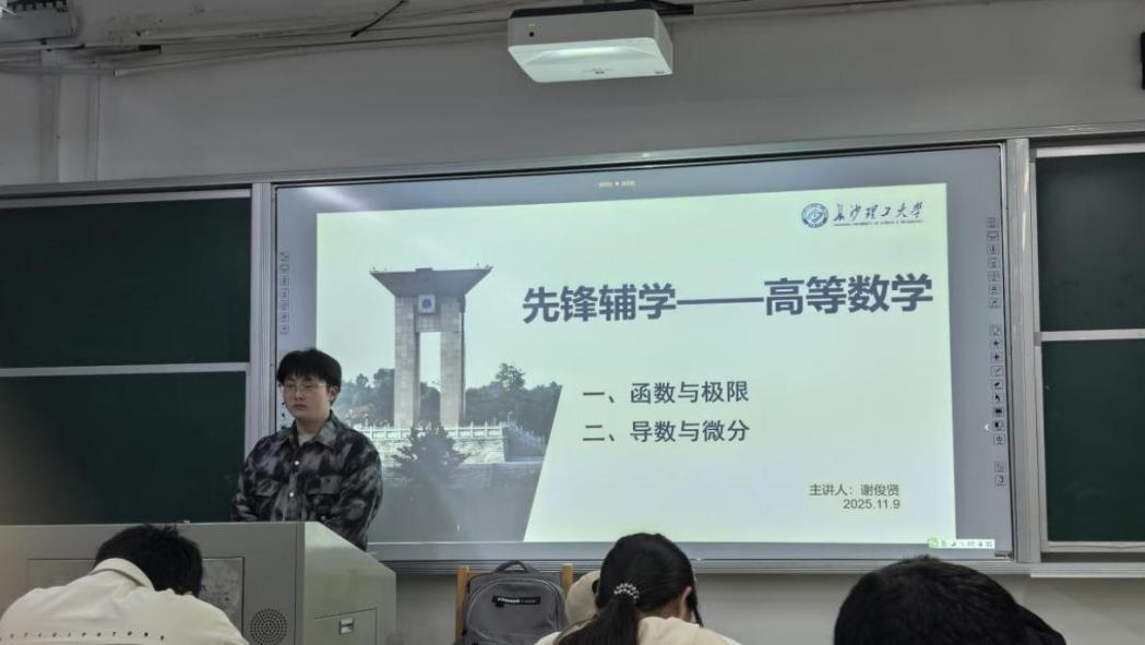 作为经验丰富的“学霸领航者”,谢俊贤结合自身学习心得与期中备考重点,创新采用“理论拆解+习题巩固”的双轨模式,为同学们带来了一场干货满满的辅导课程。在理论讲解环节,他以清晰的逻辑脉络、通俗的语言表达,系统梳理了函数与极限、导数与微分两大核心模块的知识点框架,重点拆解了概念定义、公式推导及应用场景,帮助同学们厘清知识逻辑、构建完整体系。进入习题巩固环节,谢俊贤精心筛选典型习题,兼顾基础题型与拓展题型,通过“真题解析+技巧总结+易错点警示”的方式,指导同学们掌握解题思路与答题规范,同时针对大家提出的共性问题进行细致答疑,有效破解了学习中的困惑。