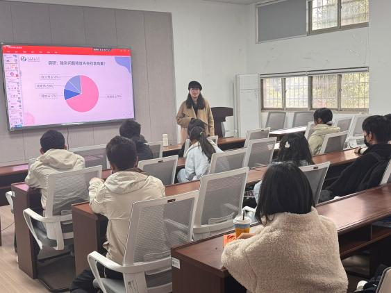 培训伊始,唐菲楠结合前期学生心理健康调研数据,指出当前大学生对心理健康关注度显著提升,以此强调心理委员作为“朋辈互助第一纽带”的重要性。随后,她系统讲解心理委员“四合一”核心角色:一是“活动组织者”,负责策划班级健心活动,配合校院落实“525心理健康月”“1010世界精神卫生宣传周”等主题活动;二是“知识普及者”,定期在班级分享心理健康知识与优质学习资源;三是“信号监测者”,密切留意同学“情绪持续低落”“社交回避”等异常情况,按保密原则及时向学院反馈;四是“倾听支持者”,耐心倾听同学烦恼,引导有需要的同学寻求专业心理帮助。