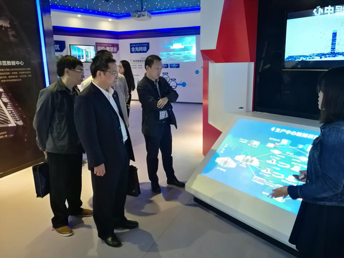 胡永乐一行首先参观了湖南省邮电规划设计院的“未来云展厅”,对公司的历史、架构、核心技术以及发展方向有了初步的了解。胡永乐对湖南省邮电规划设计院有限公司在我院学生实习及就业方面提供的支持表示感谢。他指出,根据我校提出培养“两好两强”的人才的培养目标,实践能力强需要企业的大力支持,因此校企双方要结合我校即将开展的本科教学审核评估工作,加大力度开展校外实习基地的建设,在校内外指导教师能力提高、企业员工培训和学生就业等方面进一步开展深入合作。