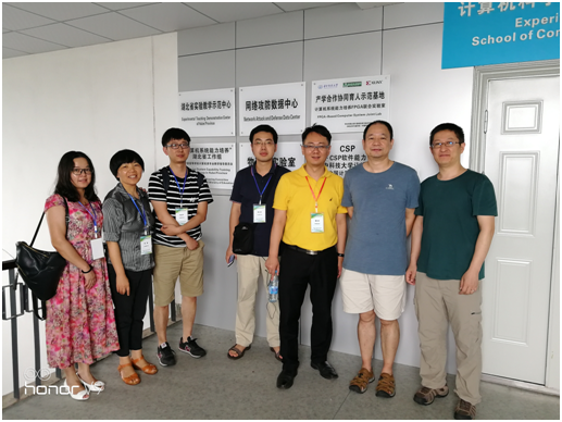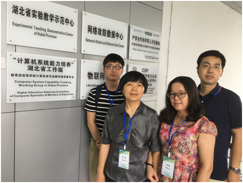 2018年7月6日至7月8日,计算机与通信工程学院计科系老师黄敏、陈沅涛、张经宇,网络系龙际珍一行四人前往华中科技大学参加“2018年计算机组成原理实验导教班”学习调研,并与华中科技大学相关教师谭志虎、胡迪青、秦磊华进行深入交流探讨。