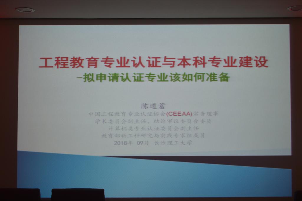 为使广大教师更好地理解工程教育专业认证的标准和理念,扎实推进工程教育专业认证工作, 9月7日上午,我院邀请中国工程教育专业认证协会(CEEAA)常务理事、中国工程教育认证协会结论审议委员会副主任、计算机类认证分委员会副主任、南京大学教授陈道蓄做专题报告。会议由副院长姜腊林主持,全院教师参加了会议。
