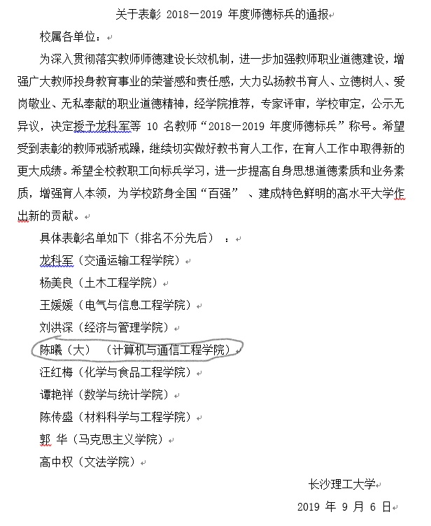 9月10日,第35个教师节来临之际,我院院长王进教授、计算机科学系党委书记陈曦教授在这个特殊的日子各自收获了一份特殊的礼物,分别入选2019年湖南省“芙蓉学者”推荐名单,获评2019年香港六宝合典资料大全师德标兵,这份教师节礼物他们担得起!