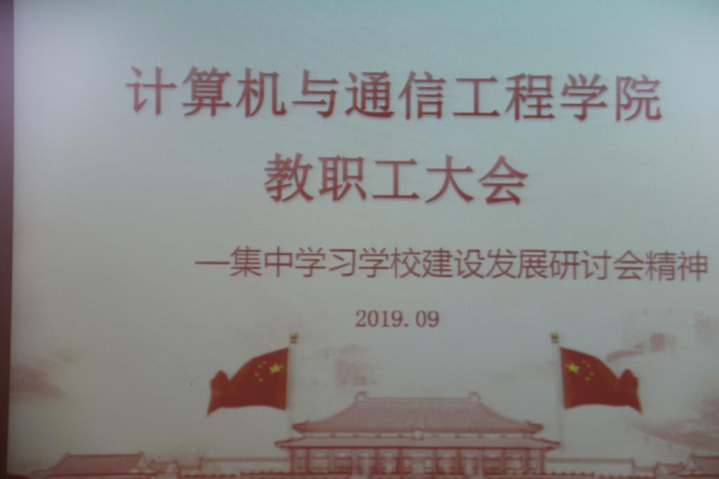 9月10日下午,我院2019年度上学期全院教职工大会在理科楼B311举行,院党委书记甘为传达学校建设发展研讨会精神,院长王进作新学期工作报告。会议由院党委副书记陈华主持。