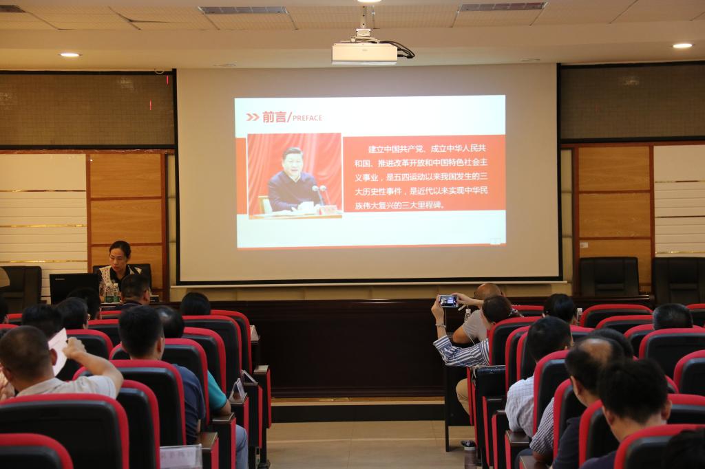 9月24日下午,校党委委员、委宣传部部长方琼在理科楼B311室为计通学院、材料学院全体教职工作庆祝中华人民共和国成立70周年主题宣讲。计通学院院党委书记甘为主持会议。