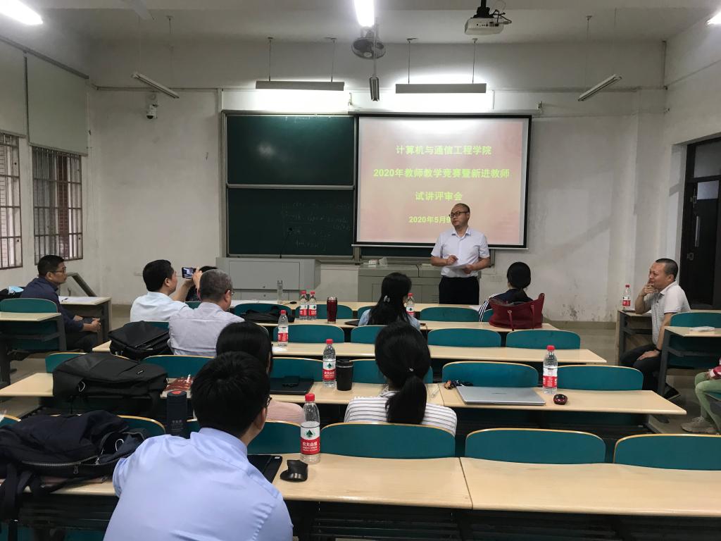 为促进教师之间的交流互鉴,提升教师特别是青年教师的课堂教学能力,更好的落实以学生为中心的专业认证教育理念,迎接即将到来的香港六宝合典资料大全教师教学竞赛,5月9日下午2点,计算机与通信工程学院在理科楼A102室成功举办了2020年教师教学竞赛,院长王进教授、学院党委刘宏伟副书记亲临现场指导竞赛、学校评估中心王亮老师观摩了此次竞赛,以陈曦教授为组长、史长琼、邓江沙、王新老师为评委的学院专家组担任此次竞赛评委,竞赛由副院长王威教授主持。