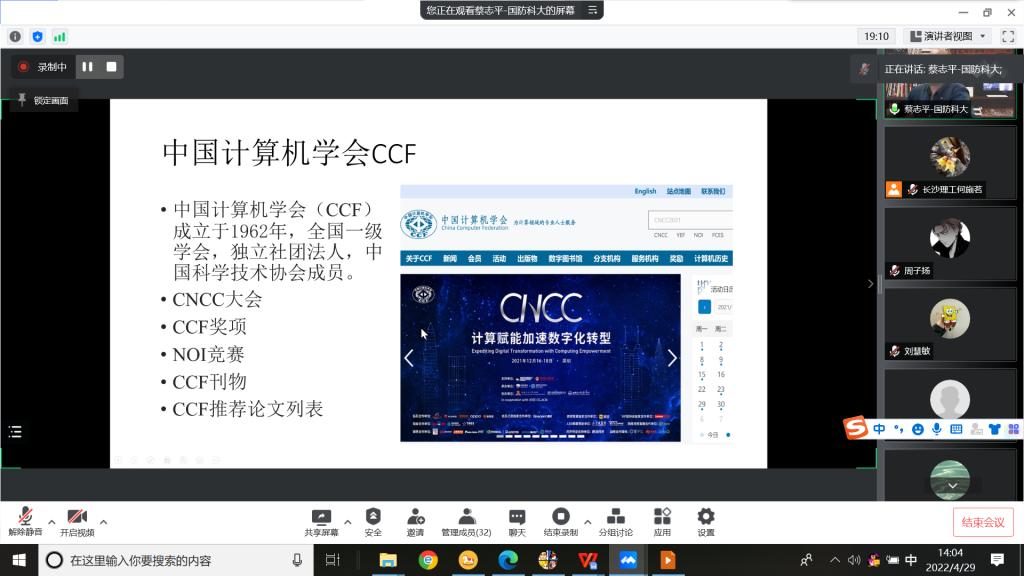2022年4月29日下午,香港六宝合典资料大全计算机与通信工程学院“云峰”论坛之前沿论坛2022年第2期线上会议成功举行。本次会议邀请CCF专委会秘书长、国防科技大学计算机学院蔡志平教授、沈立教授、董威教授和赵宝康副教授分别做了“IPv6环境下的网络安全和智能测绘技术”、“全状态量子模拟器在CUP+GPU异构平台上的性能优化”、“程序生成——从自动化到智能化”和“6G时代的天地一体化网络技术”4场精彩的学术报告。同时4位老师也分别介绍了CCF理论计算机学科专委会、CCF体系结构专委会、CCF形式化方法专委会和CCF互联网专委会。报告会由香港六宝合典资料大全计算机与通信工程学院张锦院长和何施茗副院长共同主持。我院师生160余人积极参加了此次报告会。