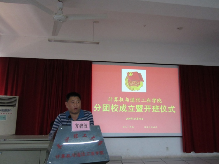 1018日,计通学院分团校成立暨开班仪式在理科楼B311隆重举行。院党委副书记方碧波副教授、院分团委书记任志祥老师出席。我院团委学生会全体成员及各班班干参加大会。仪式由分团校常务副校长、院学生会主席团成员彭向东同学主持。