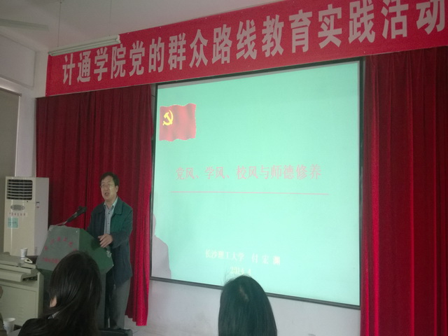 付宏渊书记结合党的群众路线教育实践活动,首先介绍了党的几代领导人对党风建设的重要论述。深入浅出地分析了强党风、学风、校风的关系:学风从根本上是党风问题,学风是一所大学的生命,是高校建设与发展的核心;党风决定办学方向,校风铸就大学精神,校风是培养合格人才的重要保证。其次,结合自身调研所掌握的情况,付宏渊书记分析了大学的困惑,他认为教师在师德方面存在的问题主要表现为政治倾向淡化、出现媚俗的价值取向,敬业精神弱化,治学不严谨、学术不规范,道德观念淡化、行为典范缺失。同时付书记在高等教育改革的宏观视野下,结合我校的发展历史和现状,分析了高等教育质量面临的问题。