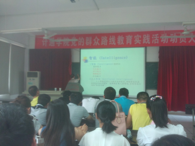 2014年6月3日下午两点,唐贤瑛教授在理科楼B311为学院研究生举行了一场以“战争向智能化飞跃”为题的讲座,讲座由徐蔚鸿副院长主持。计通学院研究生辅导员易亭亭老师及2012级部分研究生、2013级全体研究生参加了本次讲座。