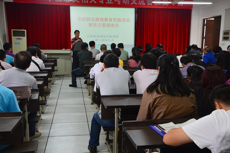 9月16日下午,计算机与通信工程学院组织召开党的群众路线教育实践活动整改方案通报会,副校长叶泽、机关党委副书记刘安生及学校第四督导组全体成员出席了本次会议。学院党委书记方琼主持会议。