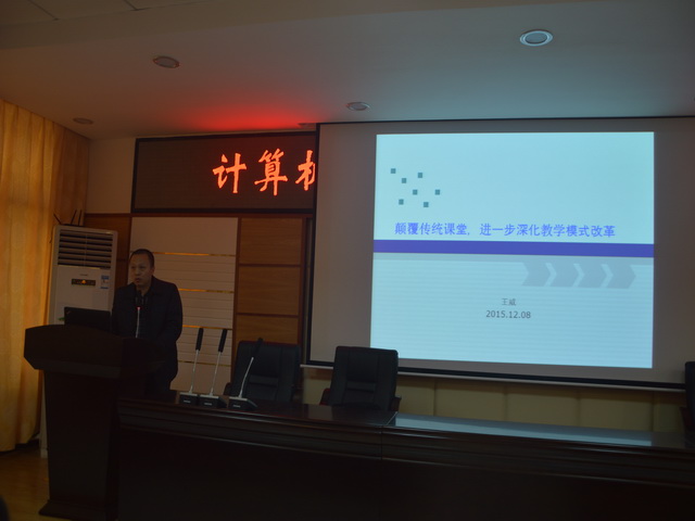 其次,王威就颠覆传统课堂,进一步深化教学模式改革进行解读,从学院继续以工程教育认证为抓手进行专业建设;树立教学楷模、强化教师队伍建设;建立课程建设标准、树立新的课堂教学理念;“计通云学宝”课堂改革的进一步深入;计通云与严肃考试系统的有机结合,改革考试模式;强化科创平台建设,加强学生实践能力和创新能力培养六个方面进行详细阐述。