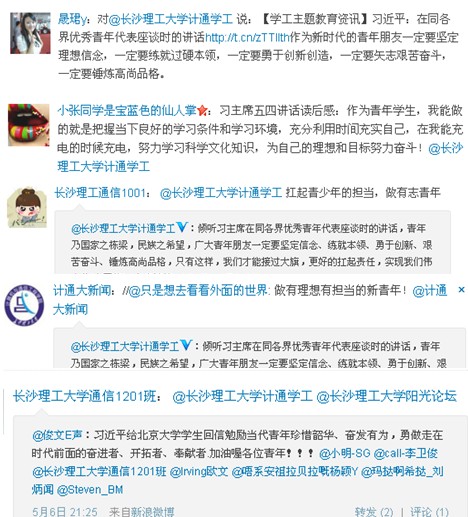 计通学院第一时间组织全体学生认真学习习近平总书记和徐守盛书记关于五四青年的讲话精神,并通过微博表达了发奋学习、报效祖国,以“青春梦”托起“中国梦”。