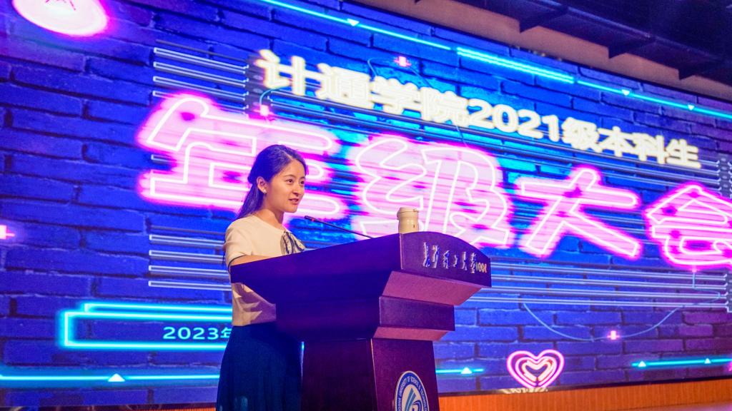 521日晚,计通学院在金盆岭五教报告厅举行2021级本科生年级大会。院党委副书记王觊婧、22级辅导员余泽宇出席,21级辅导员潘枝花主持。