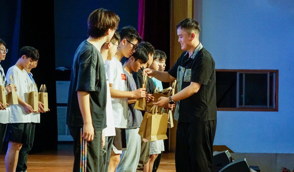 在才艺秀环节,8位同学为大家带来了丰富精彩的节目表演,现场气氛活跃。正值525大学生心理健康素质提升月活动,老师指导同学们围绕“青春健心,爱己兼行”的活动主题,通过“击鼓传花兑换心愿”“幸运抽奖随机问答”等游戏,让同学们在有趣的活动中学习自我身心健康关照和爱己爱人的心理知识,同时通过鲜花传递表达祝福。