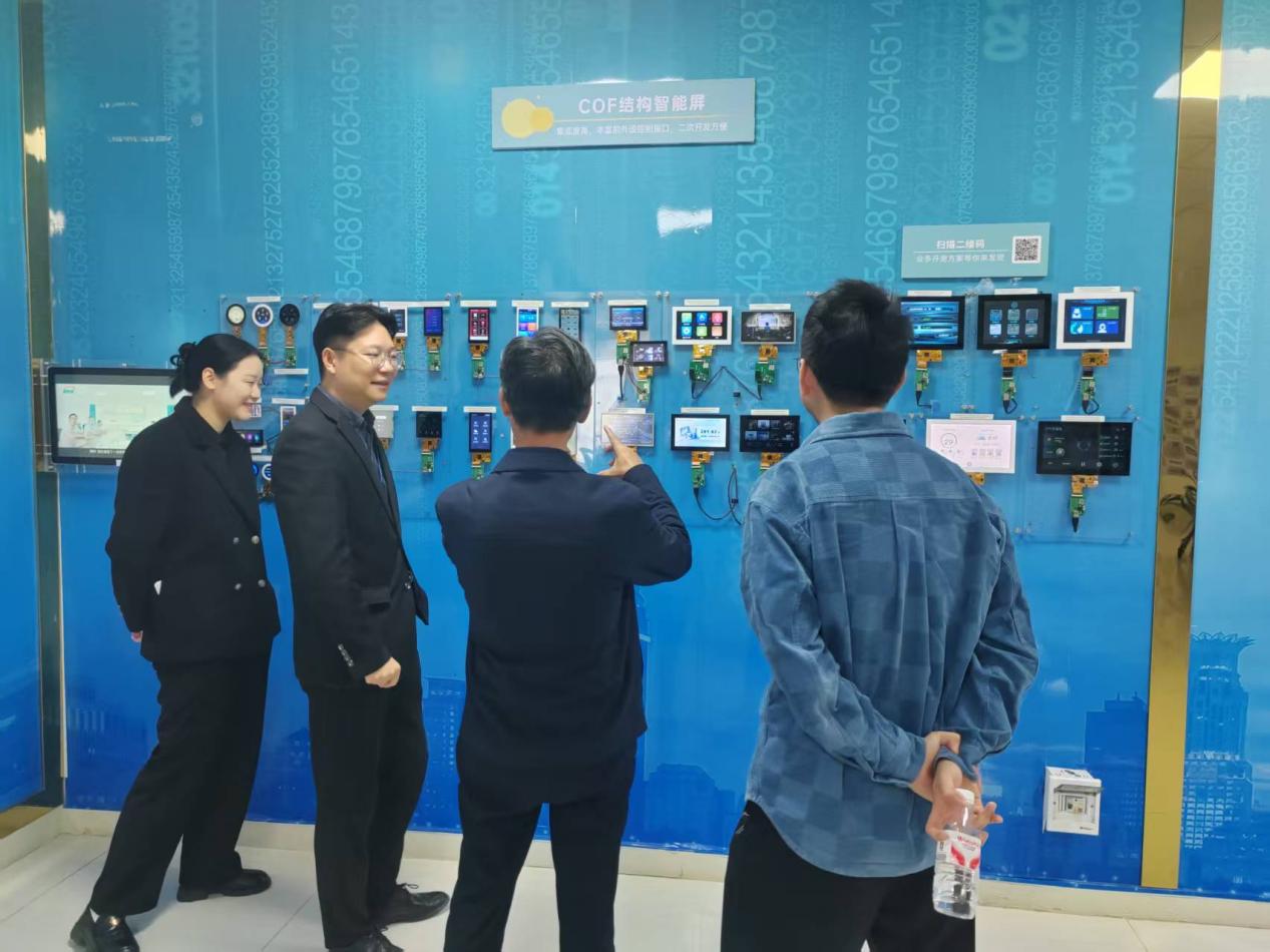 在迪文科技市场部经理莫炎的陪同下,学院一行首先参观了企业展厅。通过讲解与互动演示,考察团深入了解了迪文科技的发展历程、核心产品、技术优势及市场布局,现场体验了其在人机交互、智能终端等领域的创新成果。