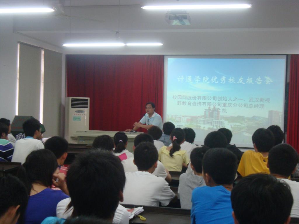 6月17日下午3点计通学院校友创业报告会在理科楼B-311成功举行。这次报告会由2010届网络工程毕业生林仁凯担任主讲,院学工办主任伍接朝老师主持,我院团委、学生会全体干部及各班班长、团支书参加了此次报告会。