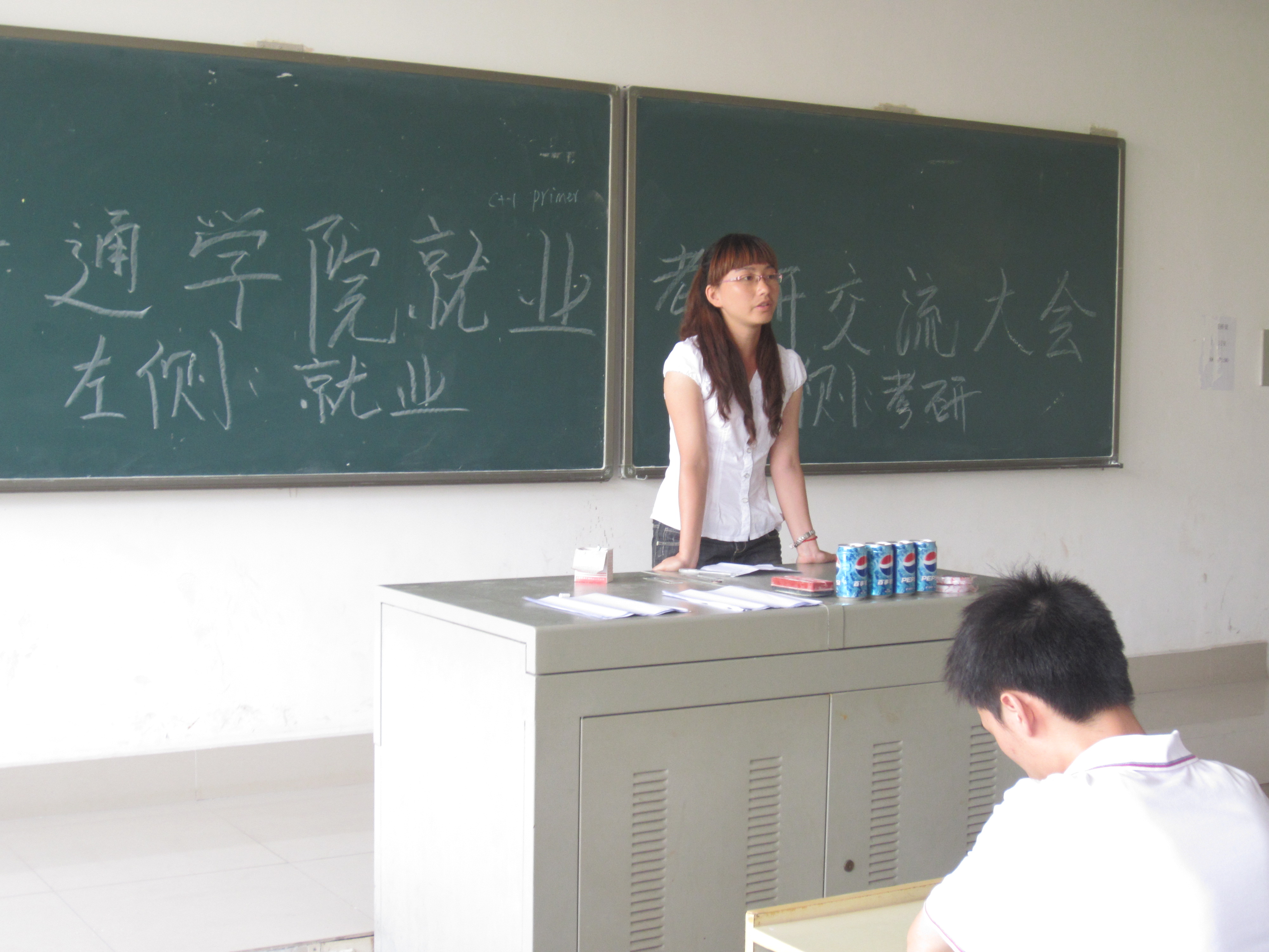 交流会分报告、互动交流两个环节。在报告中,考研达人张巧玲对2012届毕业生考研情况做了简要的介绍,从自身经历出发,向大家详细讲述了如何确认专业方向、学校,安排备考进度,调整心态等,给准备考研的同学们了许多切实可用的建议;就业达人尚森森等几名同学则从就业的角度,讲述了自己的求职经历,在专业技能储备、面试技巧、职务选择等方面谈了自己的看法和经验。互动环节,大家纷纷提出自己关心或困惑的问题,得到了一定的指导建议,付希傲还现场组织大家进行无领导小组讨论,大家发散思维,娓娓而谈,实实在在体验了一把“求职”。