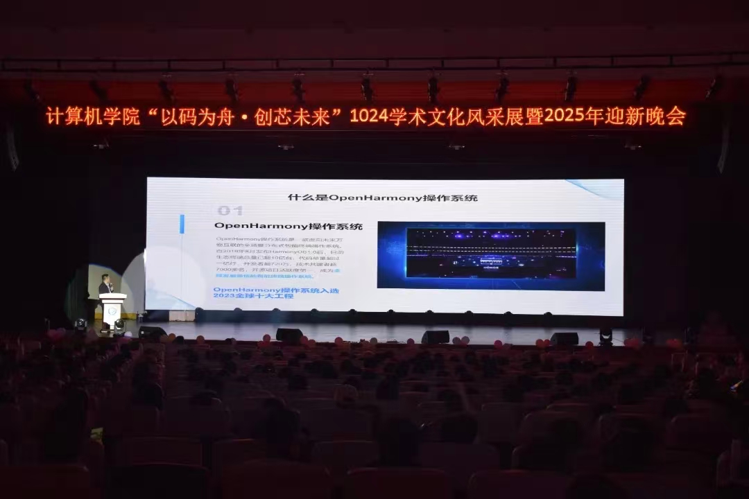 为深入贯彻落实产教融合发展战略,培育新一代信息技术领域创新人才,10 月 24 日,计算机学院在 5 教大礼堂成功召开创新创业培训会。本次会议特别邀请拓维信息系统股份有限公司产业与人才发展部总监任荣主讲,学院 800 余名学生现场聆听学习,共同探寻鸿蒙生态中的创新创业机遇。