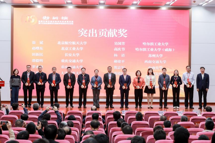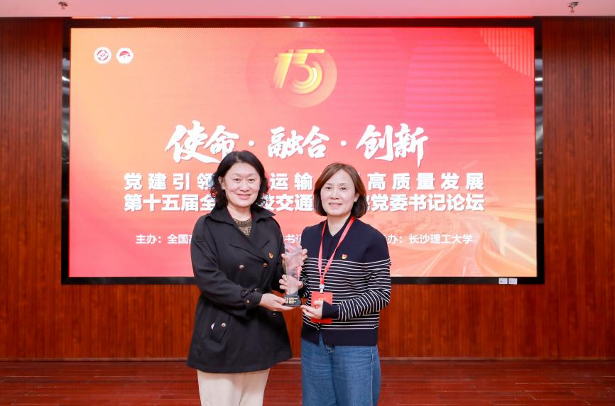 开幕式上,付宏渊、陈怡共同为全国高校交通类学院党委书记论坛十五周年突出贡献者颁发奖牌。