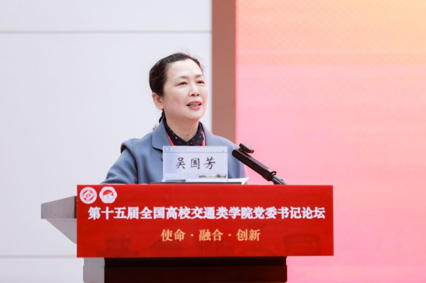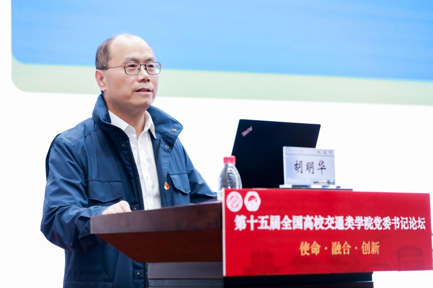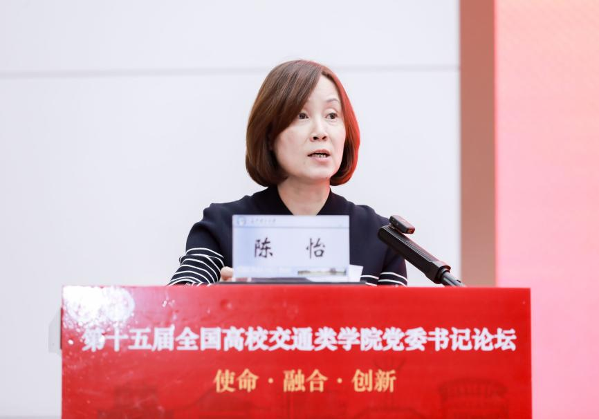 论坛理事长、东南大学交通学院党委书记陈怡在致辞中表示,面对教育强国、科技强国、人才强国及交通强国建设的新使命,交通类学院党建工作要紧扣时代脉搏,弘扬新时代交通精神,落实立德树人根本任务,深化产教融合,增强创新意识,培育时代新人,推动党建与事业发展深度融合。