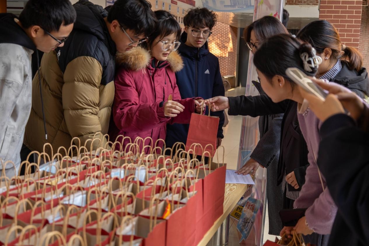 学院坚持以学生为中心,提前调研、周密策划,针对考研学子在冲刺阶段的切实需求,专门定制了实用又寓意深远的“健康助力加油包”。礼包内含独立包装的红糖姜茶、艾草安神足浴包以及持久保暖的贴片暖宝宝,为冬日奋战在书桌前的学子送去实实在在的温暖;同时配备医用防护口罩,提醒同学们在流感季节做好健康防护;还贴心准备了巧克力、雪饼等便携零食,帮助及时补充能量。每一份加油包中还附有一张由辅导员和同学们亲手书写的祝福卡片,字里行间承载着全院师生对考研学子的真挚鼓励与殷切期盼。