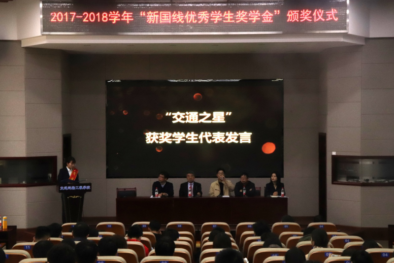获奖学生代表第一届“新国线优秀学生奖学金”获得者08级吴纯分享了她的工作感悟,希望各位交通青年珍惜大学时光,多学知识,掌握本领,充实自己,回报母校。本届“新国线优秀学生奖学金”获得者15级林雅婷为同学分享了自己的科技比赛经历与学习心路历程。本届“交通之星”获奖代表蒋玲琳分享了在社会实践,科技创新的所感所悟。
