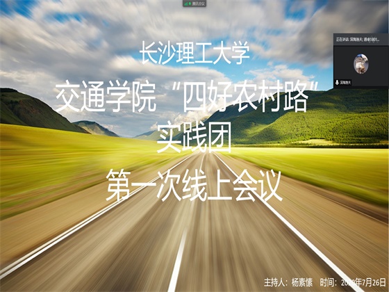 7月26日上午,交通学院“四好农村路”实践团召开第一次线上会议。此次会议由团队负责人杨素愫主持,团队全体成员参加会议。