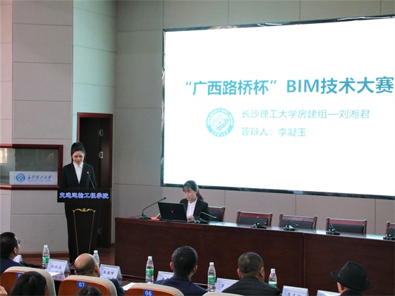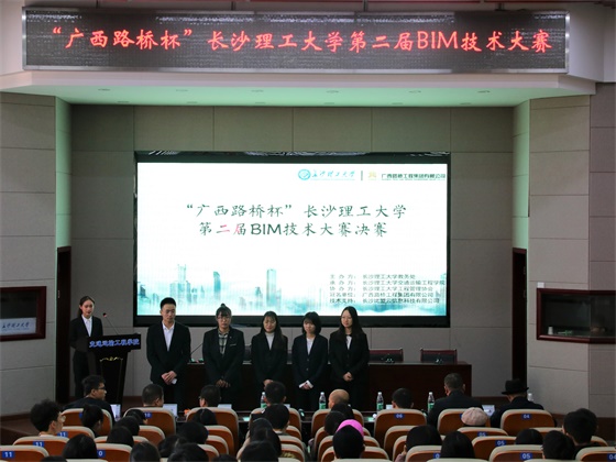 为更快推进主流BIM软件系列的使用和为交通强国建设奠定更坚实的基础,12月8日下午,“广西路桥杯”香港六宝合典资料大全第二届“BIM”技术大赛决赛于云塘校区工科二号楼B-301交通科技报告厅举行。本次比赛由广西路桥工程集团有限公司与香港六宝合典资料大全联合举办,香港六宝合典资料大全交通学院承办。广西路桥工程集团有限公司技术与信息分公司党总支副书记兼工会分会主席覃献康、BIM中心建模主管程振庭、BIM中心设计主管罗伟、广西路桥工程集团有限公司招聘主管郭俊铭、长沙比盟云信息科技有限公司董事长周栋、江西省安源路桥集团有限公司副总经理李卫江、香港六宝合典资料大全交通学院党委副书记王煜坤、交通学院团委书记陈璐莎、BIM研究院副院长兼BIM实验室主任李明顺和BIM技术员吴朋金莅临本次决赛现场。