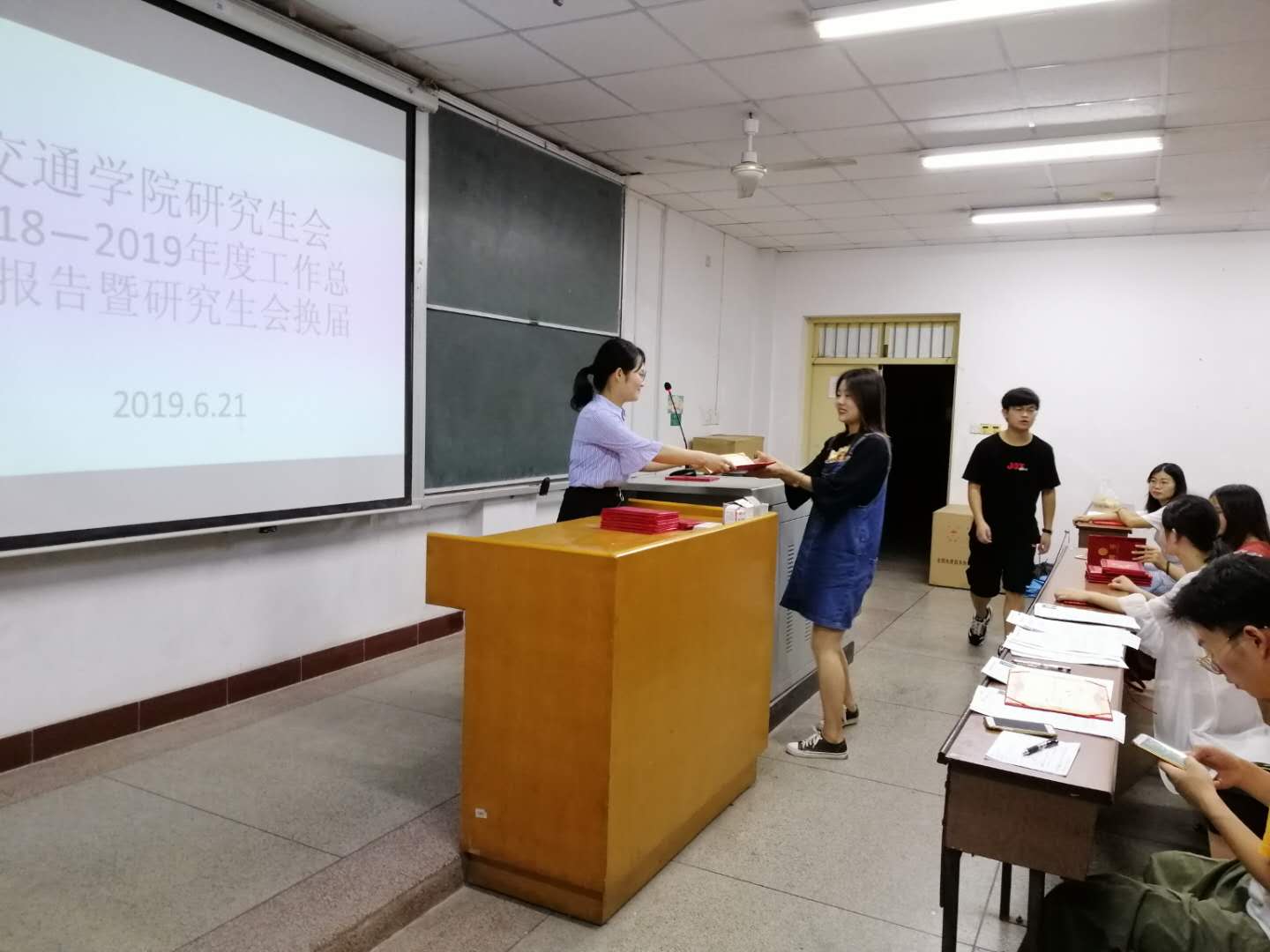 6月23日晚7点,交通学院研究生会在金盆岭4教409教室召开2018-2019年度总结报告暨研究生换届大会。会议由院团委副书记罗靖主持,研究生辅导员汪招霞、校研究生会代表及院研究生会全体成员参加此次会议。