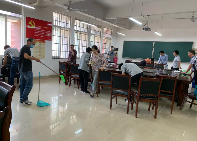 为深入贯彻落实省委组织部《关于在统筹推进疫情防控和经济社会发展中当先锋、作表率、展作为的倡议书》,进一步发挥党支部战斗堡垒作用,确保学生返校后师生复学工作安全有序,在毕业班学生即将返校前夕,5月19日下午,交通运输系党支部围绕“疫情防控践初心、严峻斗争担使命”主题开展党日活动,本次党日活动的主要内容是系室工作场地大扫除和复学前准备工作落实。